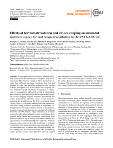 Guo, L. ORCID: https://orcid.org/0000-0002-6004-3884, van der Ent, R. J. ORCID: https://orcid.org/0000-0001-5450-4333, Klingaman, N. P. ORCID: https://orcid.org/0000-0002-2927-9303, Demory, M.-E. ORCID: https://orcid.org/0000-0002-5764-3248, Vidale, P. L. ORCID: https://orcid.org/0000-0002-1800-8460, Turner, A. G. ORCID: https://orcid.org/0000-0002-0642-6876, Stephan, C. and Chevuturi, A. ORCID: https://orcid.org/0000-0003-2815-7221 (2020) Effects of horizontal resolution and air-sea coupling on simulated moisture source for East Asian precipitation. Geoscientific Model Development Discussions, 13 (12). pp. 6011-6028. ISSN 1991-962X doi: 10.5194/gmd-13-6011-2020