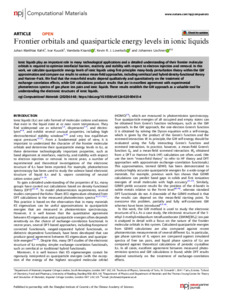 Frontier orbitals and quasiparticle energy levels in ionic liquids.