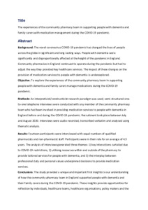 The experiences of the community pharmacy team in supporting people with dementia and family carers with medication management during the COVID-19 pandemic.