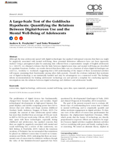 A large-scale test of the Goldilocks hypothesis: quantifying the relations between digital-screen use and the mental well-being of adolescents.
