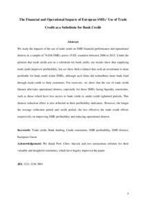 Carbo-Valverde, S., F. Rodriguez-Fernandez, and G. F. Udell. 2016. “Trade Credit, the Financial Crisis, and SME Access to Finance.” Journal of Money, Credit and Banking 48 (1): 113-143.
