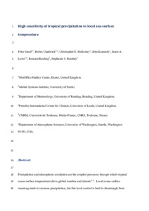 High sensitivity of tropical precipitation to local sea-surface temperature.