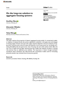 Meen, G., Mihailov, A. ORCID: https://orcid.org/0000-0003-4307-4029 and Wang, Y. (2022) On the long-run solution to aggregate housing systems. Urban Studies, 59 (1). pp. 178-196. ISSN 1360-063X doi: 10.1177/0042098020976019