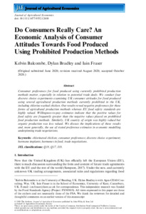 Balcombe, K., Bradley, D. and Fraser, I. (2021) Do consumers really care? An economic analysis of consumer attitudes towards food produced using prohibited production methods. Journal of Agricultural Economics, 72 (2). pp. 452-469. ISSN 1477-9552 doi: 10.1111/1477-9552.12410