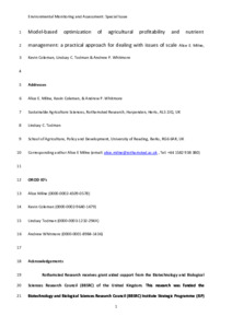 Milne, A. E., Coleman, K., Todman, L. C. ORCID: https://orcid.org/0000-0003-1232-294X and Whitmore, A. P. (2020) Model-based optimization of agricultural profitability and nutrient management: a practical approach for dealing with issues of scale. Environmental Monitoring and Assessment, 192. 730. ISSN 0167-6369 doi: 10.1007/s10661-020-08699-z