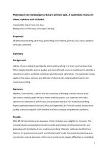Pharmacist non-medical prescribing in primary care. A systematic review of views, opinions and attitudes