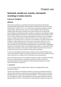 Patch-clamp recordings are a powerful tool for the live measurement of the plasma membrane biophysical properties, with the ability to discriminate fast events such as fast inactivating Na+ currents (<1 ms c.a.). It can be used in virtually every cell-type, including cardiomyocytes, skeletal muscles, neurons, and even epithelial cells and fibroblasts. Voltage-clamp, patch-clamp recordings can be used to measure and characterize the pharmacological and biophysical profile of membrane conductances, including leak, voltage-gated and ligand-gated ion channels. This technique is particularly useful in studies carried out in cell-lines transfected with the gene expressing the conductance under investigation. However, voltage-clamp measures conducted on the soma of a native, adult neuron, for example in an acute brain slice or in the brain of a live individual, are subject to three major limitations: 1) the branching structure of the neuron causes space-clamp errors 2) ion channels are differentially expressed across different neuronal compartments (such as soma, dendrites and axons) and 3) the complex geometry of neurons makes it challenging to calculate current densities. While not preventing the experimenter to conduct patch-clamp, voltage-clamp recordings in native neurons, these limitations make the measures poorly standardized and hence often unusable for testing specific hypotheses. To overcome the limitations outlined above, outside-out, patch-clamp recordings can be carried out instead (See chapter etc); however, the signal-to-noise ratio in outside-outs from native, adult neurons is usually too low for obtaining accurate measurements. Here we describe how to carry out nucleated, outside-out, somatic, macropatch recordings (from now on abbreviated into “macropatch recordings”) to obtain accurate and standardised measures of the biophysical and pharmacological properties of somatic, neuronal membrane conductances.