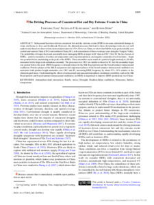 Tian, F., Klingaman, N. P. ORCID: https://orcid.org/0000-0002-2927-9303 and Dong, B. ORCID: https://orcid.org/0000-0003-0809-7911 (2021) The driving processes of concurrent hot and 2 dry extreme events in China. Journal of Climate, 34 (5). pp. 1809-1824. ISSN 1520-0442 doi: 10.1175/JCLI-D-19-0760.1