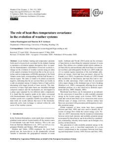 Marcheggiani, A. and Ambaum, M. H.P. ORCID: https://orcid.org/0000-0002-6824-8083 (2020) The role of heat-flux–temperature covariance in the evolution of weather systems. Weather and Climate Dynamics, 1 (2). pp. 701-713. ISSN 2698-4024 doi: 10.5194/wcd-1-701-2020