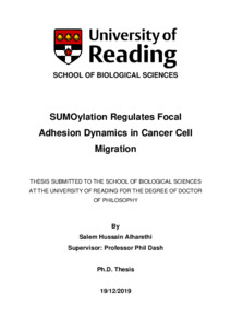 Alharethi, S. H. (2020) SUMOylation regulates focal adhesion dynamics in cancer cell migration. PhD thesis, University of Reading. doi: 10.48683/1926.00093926