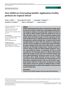 Hill, P. G. ORCID: https://orcid.org/0000-0002-9745-2120, Stein, T. H. M. ORCID: https://orcid.org/0000-0002-9215-5397, Roberts, A. J., Fletcher, J. K., Marsham, J. H. and Groves, J. (2020) How skilful are nowcasting satellite applications facility products for tropical Africa? Meteorological Applications, 27 (6). e1966. ISSN 1350-4827 doi: 10.1002/met.1966