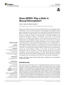 Dovey, J. L. and Vasudevan, N. ORCID: https://orcid.org/0000-0003-4326-3938 (2020) Does GPER1 play a role in sexual dimorphism? Frontiers in Endocrinology, 11. 595895. ISSN 1664-2392 doi: 10.3389/fendo.2020.595895