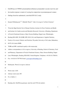 Glu298Asp (rs1799983) polymorphism influences postprandial vascular reactivity and the insulin response to meals of varying fat composition in postmenopausal women: findings from the randomized, controlled DIVAS-2 study.