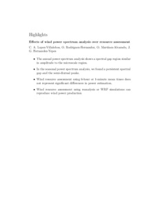 Based on the Van der Hoven's seminal work, wind power industry has adopted the 10 minutes mean time as the proper sampling to estimate resource assessment. However, research within the literature questions the generalization of the 10 minutes as a standard measure of minima dispersion due to the particular geographic characteristics where the measurements took place. In this work the power spectrum of a high-frequency wind speed time series is analyzed and its influence over the resource assessment in the region of La Ventosa, Oaxaca, Mexico. Power spectrum analysis from a monthly, seasonal, and annual time series results show a defined synoptic-scale, diurnal, and semi-diurnal variations, which changes in amplitude throughout the year.To study the influence of power spectrum in wind resource assessment were estimated and compared the capacity factors of a typical 2MW wind turbine against measured wind speed with 1, 5, 10, 60, and 360 minutes mean times, we found that a maximum difference of 1.4 %. Resource assessment was also estimated using reanalysis data and WRF results, finding similar to high-resolution estimations, highlighting bias-corrected WRF performance, offering reliable results to model power performance after a statistical correction.