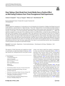 Does taking a short break from social media have a positive effect on well-being? Evidence from three preregistered field experiments.