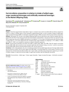 Gut microbiota composition in relation to intake of added sugar, sugar-sweetened beverages and artificially sweetened beverages in the Malmö Offspring Study.