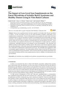 Poveda, C., Pereira, D. I. A., Lewis, M. and Walton, G. ORCID: https://orcid.org/0000-0001-5426-5635 (2020) The impact of low-level iron supplements on the faecal microbiota of irritable bowel syndrome and healthy donors using in vitro batch cultures. Nutrients, 12 (12). 3819. ISSN 2072-6643 doi: 10.3390/nu12123819