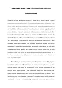 | Uncontrolled Keywords | Samuel Beckett, Politics, South Africa, Baxter Theatre, Donald Howarth |