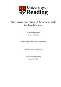 McArthur, R. (2020) Parasitellus fucorum: a beneficial mite for bumblebees. PhD thesis, University of Reading. doi: 10.48683/1926.00095009