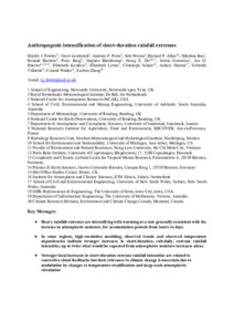 Fowler, H. J., Lenderink, G., Prein, A. F., Westra, S., Allan, R. ORCID: https://orcid.org/0000-0003-0264-9447, Ban, N., Barbero, R., Berg, P., Blenkinsop, S., Do, H. X., Guerreiro, S. B., Haerter, J. O., Kendon, E., Lewis, E., Schaer, C., Sharma, A., Villarini, G., Wasko, C. and Zhang, X. (2021) Anthropogenic intensification of short-duration rainfall extremes. Nature Reviews Earth & Environment, 2. pp. 107-122. ISSN 2662-138X doi: 10.1038/s43017-020-00128-6