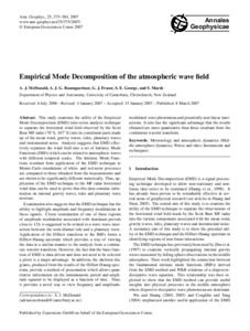 McDonald, A. J., Baumgaertner, A. J. G., Fraser, G. J., George, S. E. ORCID: https://orcid.org/0000-0002-0396-0299 and Marsh, S. (2007) Empirical Mode Decomposition of the atmospheric wave field. Annales Geophysicae, 25 (2). pp. 375-384. ISSN 1432-0576 doi: 10.5194/angeo-25-375-2007