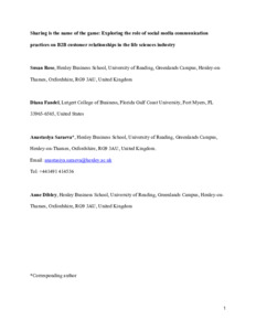 Sharing is the name of the game: exploring the role of social media communication practices on B2B customer relationships in the life sciences industry.