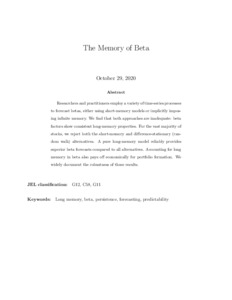 Becker, J., Hollstein, F., Prokopczuk, M. and Sibbertsen, P. (2021) The memory of beta. Journal of Banking & Finance, 124. 106026. ISSN 0378-4266 doi: 10.1016/j.jbankfin.2020.106026