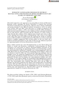 Romantic nationalism or romantic retreat? Re-evaluating the politics of Arnim and Brentano's Des Knaben Wunderhorn (1805/1808).