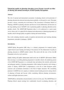 Enhancing quality in planning education across Europe: towards an ethos of sharing and mutual learning in AESOP Quality Recognition.