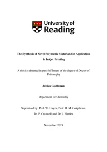 Godleman, J. (2020) The Synthesis of Novel Polymeric Materials for Application in Inkjet Printing. PhD thesis, University of Reading. doi: 10.48683/1926.00095643