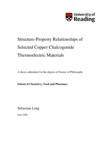 Long, S. (2020) Structure-Property Relationships of Selected Copper Chalcogenide Thermoelectric Materials. PhD thesis, University of Reading. doi: 10.48683/1926.00095649