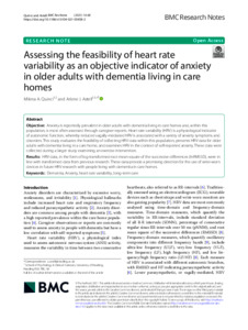 Quinci, M. A. and Astell, A. J. ORCID: https://orcid.org/0000-0002-6822-9472 (2021) Assessing the feasibility of heart rate variability as an objective indicator of anxiety in older adults with dementia living in care homes. BMC research notes, 14 (1). 48. ISSN 1756-0500 doi: 10.1186/s13104-021-05458-2