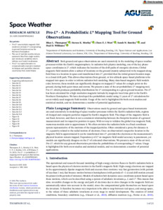 Both ground and space observations are used extensively in the modeling of space weather processes within the Earth's magnetosphere. In radiation belt physics modeling, one of the key phase‐space coordinates is L*, which indicates the location of the drift paths of energetic electrons. Global magnetic field models allow a subset of locations on the ground (mainly sub‐auroral) to be mapped along field lines to a location in space and transformed into L*, provided that the initial ground location maps to a closed drift path. This allows observations from ground, or low‐altitude space‐based platforms to be mapped into space in order to inform radiation belt modeling. Many data‐based magnetic field models exist; however these models can significantly disagree on mapped L* values for a single point on the ground, during both quiet times and storms. We present a state of the art probabilistic L* mapping tool, Pro‐L*, which produces probability distributions for L* corresponding to a given ground location. Pro‐L* has been calculated for a high resolution magnetic latitude by magnetic local time (MLT) grid in the Earth's northern hemisphere. We have developed the probabilistic model using 11 years of L* calculations for 7 widely used magnetic field models. Usage of the tool is highlighted for both event studies and statistical models, and we demonstrate a number of potential applications.