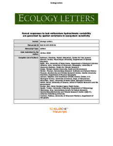 Rollinson, C. R. ORCID: https://orcid.org/0000-0003-0181-7293, Dawson, A., Raiho, A. M., Williams, J. W., Dietze, M. C. ORCID: https://orcid.org/0000-0002-2324-2518, Hickler, T., Jackson, S. T., McLachlan, J., Moore, D. J. P., Poulter, B., Quaife, T. ORCID: https://orcid.org/0000-0001-6896-4613, Steinkamp, J. ORCID: https://orcid.org/0000-0002-7861-8789, Trachsel, M. and Morin, X. (2021) Forest responses to last‐millennium hydroclimate variability are governed by spatial variations in ecosystem sensitivity. Ecology Letters, 24 (3). pp. 498-508. ISSN 1461-023X doi: 10.1111/ele.13667