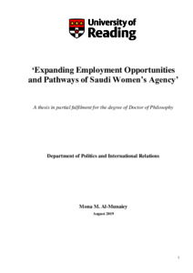 Al-Munaiey, M. (2020) Expanding employment opportunities and pathways of Saudi women’s agency. PhD thesis, University of Reading. doi: 10.48683/1926.00096366