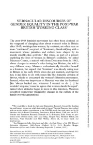 Sutcliffe-Braithwaite, F. and Thomlinson, N. (2022) Vernacular discourses of gender equality in the post-war British working class. Past and Present, 254 (1). pp. 277-313. ISSN 1477-464X doi: 10.1093/pastj/gtab012