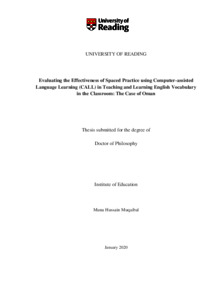 Muqaibal, M. H. (2020) Evaluating the effectiveness of spaced practice using computer-assisted language learning (CALL) in teaching and learning English vocabulary in the classroom: the case of Oman. PhD thesis, University of Reading. doi: 10.48683/1926.00096634