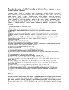 Fowler, H. J. ORCID: https://orcid.org/0000-0001-8848-3606, Ali, H., Allan, R. P. ORCID: https://orcid.org/0000-0003-0264-9447, Ban, N., Barbero, R. ORCID: https://orcid.org/0000-0001-8610-0018, Berg, P., Blenkinsop, S., Cabi, N. S., Chan, S., Dale, M. ORCID: https://orcid.org/0000-0002-1062-5771, Dunn, R. J. H. ORCID: https://orcid.org/0000-0003-2469-5989, Ekström, M., Evans, J. P. ORCID: https://orcid.org/0000-0003-1776-3429, Fosser, G., Golding, B., Guerreiro, S. B., Hegerl, G. C., Kahraman, A. ORCID: https://orcid.org/0000-0002-8180-1103, Kendon, E. J. ORCID: https://orcid.org/0000-0003-1538-2147, Lenderink, G. ORCID: https://orcid.org/0000-0002-1572-4867, Lewis, E., Li, X., O'Gorman, P. A. ORCID: https://orcid.org/0000-0003-1748-0816, Orr, H. G. ORCID: https://orcid.org/0000-0001-5021-1074, Peat, K. L., Prein, A. F. ORCID: https://orcid.org/0000-0001-6250-179X, Pritchard, D., Schär, C., Sharma, A. ORCID: https://orcid.org/0000-0002-6758-0519, Stott, P. A., Villalobos-Herrera, R., Villarini, G. ORCID: https://orcid.org/0000-0001-9566-2370, Wasko, C. ORCID: https://orcid.org/0000-0002-9166-8289, Wehner, M. F. ORCID: https://orcid.org/0000-0001-5991-0082, Westra, S. and Whitford, A. (2021) Towards advancing scientific knowledge of climate change impacts on short-duration rainfall extremes. Philosophical Transactions of the Royal Society A: Mathematical, Physical and Engineering Sciences, 379 (2195). ISSN 1364-503X doi: 10.1098/rsta.2019.0542