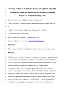 | Uncontrolled Keywords | Cell counting, microfluidics, microbiology, bacterial enumeration, resazurin, growth assay |