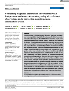 Mirza, A. K. ORCID: https://orcid.org/0000-0001-6350-9080, Dance, S. L. ORCID: https://orcid.org/0000-0003-1690-3338, Rooney, G. G., Simonin, D., Stone, E. K. and Waller, J. A. (2021) Comparing diagnosed observation uncertainties with independent estimates: a case study using aircraft‐based observations and a convection‐permitting data assimilation system. Atmospheric Science Letters, 22 (5). el01029. ISSN 1530-261X doi: 10.1002/asl.1029