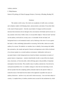 Beaman, P. ORCID: https://orcid.org/0000-0001-5124-242X (2021) Auditory attention. In: Braddick, O. (ed.) Oxford Research Encyclopedia of Psychology. Oxford University Press, Oxford. doi: 10.1093/acrefore/9780190236557.013.778