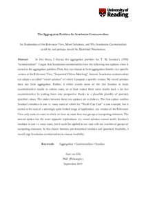 Van Gils, A. (2019) The aggregation problem for Scanlonian Contractualism: an exploration of the relevance view, mixed solutions, and why Scanlonian Contractualists could be, and perhaps should be, Restricted Prioritarians. PhD thesis, University of Reading. doi: 10.48683/1926.00097047