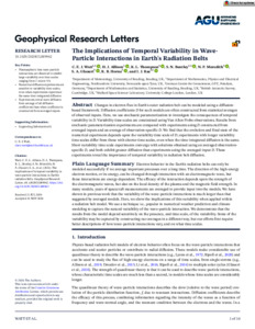 Watt, C. E. J. ORCID: https://orcid.org/0000-0003-3193-8993, Allison, H. J. ORCID: https://orcid.org/0000-0002-6665-2023, Thompson, R. L. ORCID: https://orcid.org/0000-0002-2766-0952, Bentley, S. N. ORCID: https://orcid.org/0000-0002-0095-1979, Meredith, N. P. ORCID: https://orcid.org/0000-0001-5032-3463, Glauert, S. A. ORCID: https://orcid.org/0000-0003-0149-8608, Horne, R. B. ORCID: https://orcid.org/0000-0002-0412-6407 and Rae, I. J. ORCID: https://orcid.org/0000-0002-2637-4786 (2021) The implications of temporal variability in wave‐particle interactions in Earth's radiation belts. Geophysical Research Letters, 48 (1). ISSN 1944-8007 doi: 10.1029/2020gl089962
