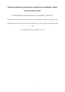 Carrillo-Berdugo, I., Grau-Crespo, R. ORCID: https://orcid.org/0000-0001-8845-1719, Zorrilla, D. and Navas, J. (2021) Interfacial molecular layering enhances specific heat of nanofluids: evidence from molecular dynamics. Journal of Molecular Liquids, 325. 115217. ISSN 0167-7322 doi: 10.1016/j.molliq.2020.115217