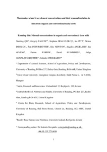 Macromineral and trace element concentrations and their seasonal variation in milk from organic and conventional dairy herds.