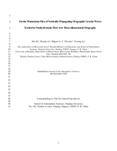 Xu, X., J. Song, Y. Wang, and M. Xue, 2017a: Quantifying the effect of horizontal propagation of three-dimensional mountain waves on the wave momentum flux using Gaussian Beam Approximation. J. Atmos. Sci., 74, 1783–1798.