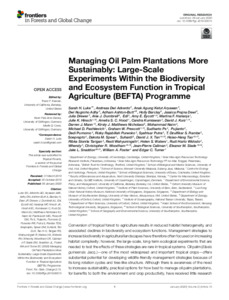 Managing oil palm plantations more sustainably: large-scale experiments within the biodiversity and ecosystem function in tropical agriculture (BEFTA) programme.