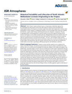 Historical variability and lifecycles of North Atlantic midlatitude cyclones originating in the tropics.