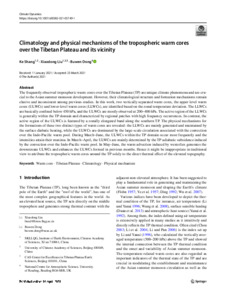 Climatology and physical mechanisms of the tropospheric warm cores over the Tibetan Plateau and its vicinity.