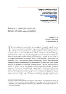 For this paper I shall look at ways of coordinating politics and entertainment, or in slightly other terms aesthetics and politics, as they have been used to construct ancient tragedy as a means to the good society. In my title this aspect of tragedy is identified as “home”, to indicate tragedy’s preoccupation with community. This is a note repeatedly struck in discourse about tragedy, both by the earliest commentators and by those negotiating the development of the nation-state, and of political reform, in the eighteenth, nineteenth and twentieth centuries. This essay thus first considers some of the different ways in which tragedy has been associated with the goal of the good community, by the theoretical works of Plato, Aristotle, Schlegel, Williams and Eagleton, as well as by harnessing productions and performances to the political effort of nation-building. The essay will then contrastingly explore tragedy’s “homelessness”, the ways in which it uproots its characters and sets them in restless motion. These latter reflections are prompted by recent receptions of tragedy that have responded to the global migrant crisis, and that are thus in dialogue with earlier critical understandings of tragedy which were more likely to foreground a sense of civic identity associated with the polis. I thus consider productions of Aeschylus’ Suppliant Women in Syracuse and Edinburgh, and the new ancient trilogy, acted by Syrian women refugees, which has unfolded since 2013, in the Middle East and Europe, under the creative guidance of Omar Abu Saada and Mohammad Al Attar. The new focus is born of and gives voice to new global realities.